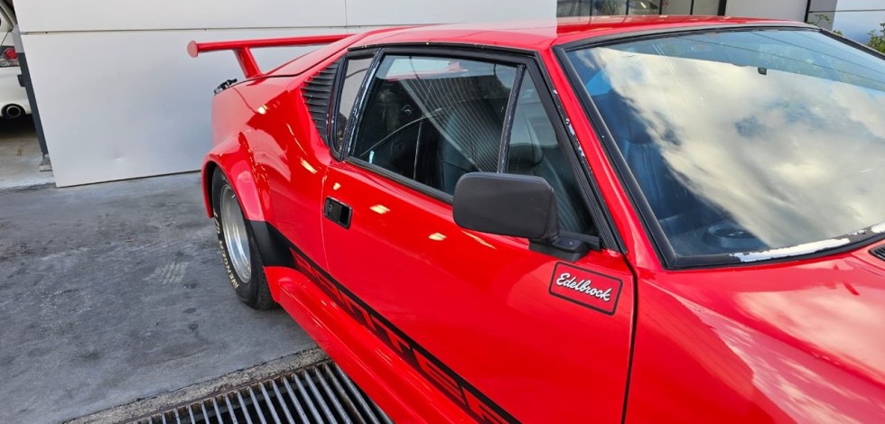 This 1974 De Tomaso Pantera is a rare and highly desirable classic sports car offered in complete, running condition and ready for restoration. Finished in striking red, it currently features a powerful Dodge 440 big-block V8 paired with a Demon carburetor, delivering impressive performance while retaining the original ZF 5-speed manual transmission—one of the most respected transaxles of its era. The Pantera’s iconic Italian design combined with American muscle makes it a standout among collectors. With values for classic Panteras steadily appreciating, especially for complete cars with strong drivetrains, this $65,000 example represents an excellent investment opportunity for enthusiasts looking to restore and own a truly distinctive piece of automotive history.